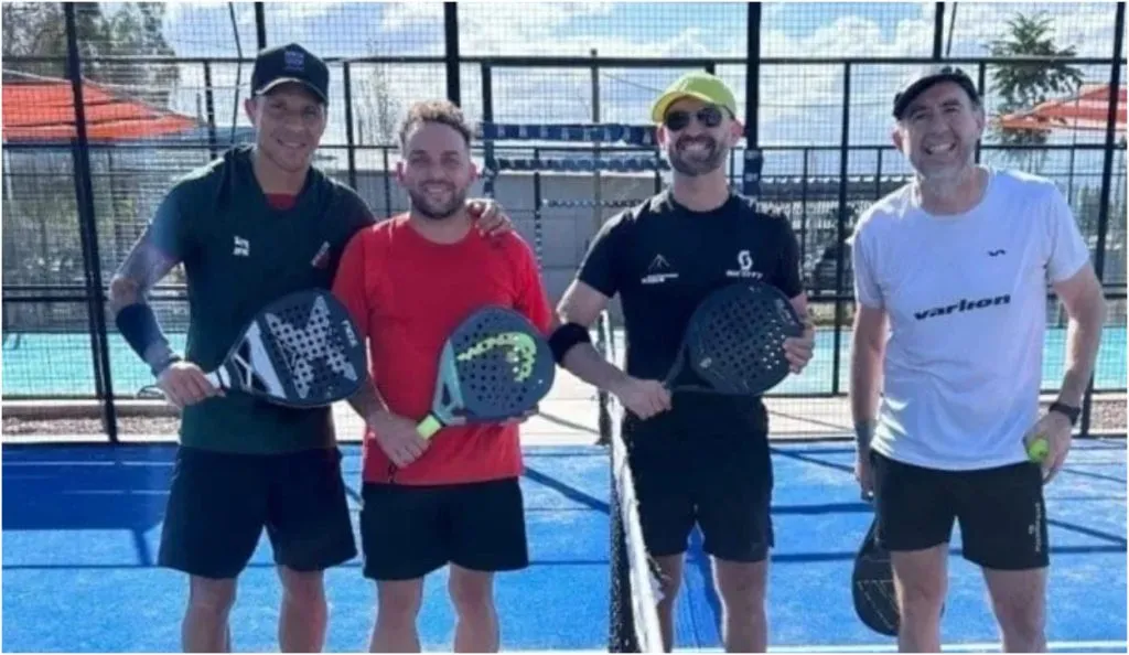 Allí se lo ve junto a tres amigos posando paleta en mano en una cancha de pádel de Mendoza, donde despunta el vicio de otro de sus deportes favoritos mientras descansa y aguarda por la resolución de su futuro futbolístico inmediato, donde por ahora todos los cañones apuntan de lleno a un regreso a River.