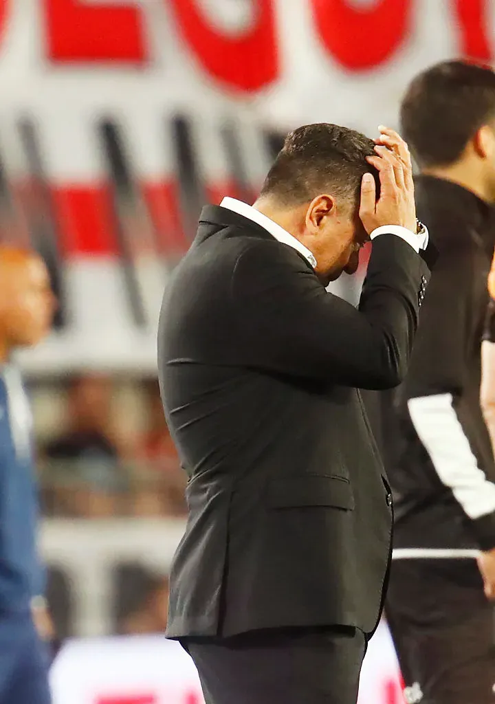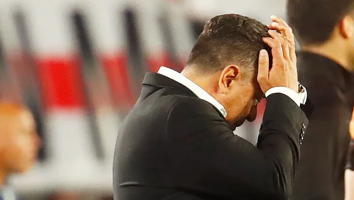 La foto fue sacada en la fatídica derrota contra Gimnasia ocurrida a comienzos de noviembre, pero tranquilamente pudo haberse dado en las derrotas previas en casa ante Riestra o Sarmiento, o en miles de momentos durante el año. El Muñeco nunca pudo encontrarle la vuelta al equipo de ninguna forma, y sus manos a la cabeza demuestran su impotencia y decepción absoluta.