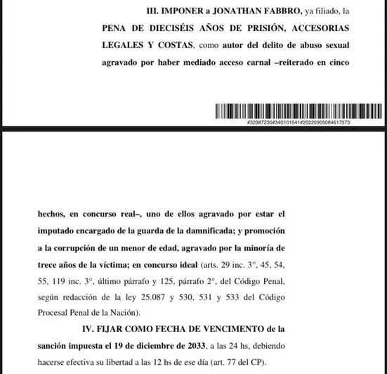 La condena se hizo efectiva en noviembre de 2019: 14 años de prisión para Fabbro. Tiempo más tarde, en 2022, el Tribunal Oral Criminal 17 extendió a 16 años la pena para Jonathan por la gravedad del delito. Así es como, a sus 43 años, el futbolista paraguayo, quien tuvo un efímero paso por River, pasa sus días encarcelado en el penal de Marcos Paz.