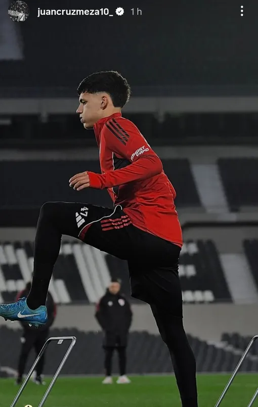En medio de la incertidumbre en relación a su futuro, el mediocampista hizo una peculiar publicación en su cuenta de Instagram. En la previa al partido contra Barracas Central, Juan Cruz publicó una foto del 2025 en la que se lo ve entrenando junto al plantel de Primera en el Estadio Monumental.
