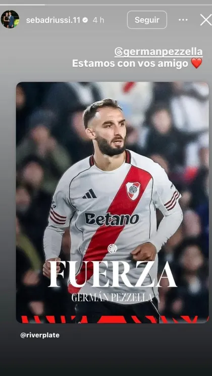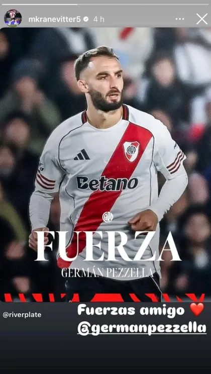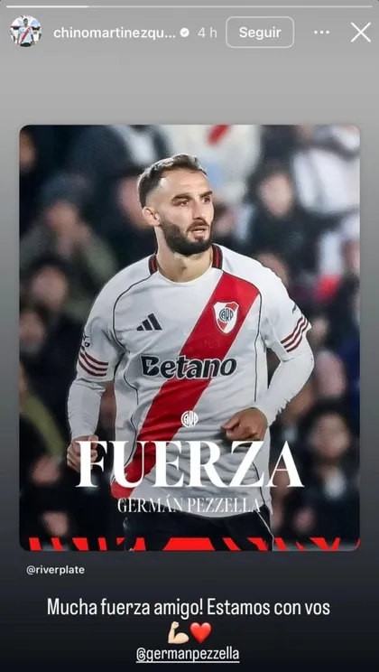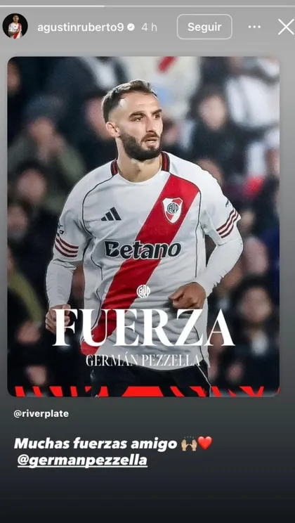River anunció el parte médico de Germán en sus redes sociales, y los jugadores de River no dudaron en dejar mensajes alentadores. “Mucha fuerza amigo, estamos con vos”, escribió Martínez Quarta. Algo parecido escribió Sebastián Driussi: “Estamos con vos amigo”, a lo que acompañó con un corazón, ese que también usó Facundo Colidio.