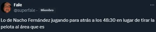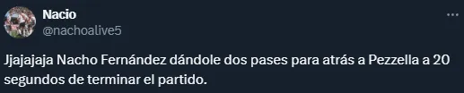 Posteriormente también ingresaron Fabricio Bustos, Pity Martínez, Gonzalo Tapia y, sobre el final, Nacho Fernández. Y si bien no tuvo muchos minutos, este último fue, una vez más, objetivo de críticas para los hinchas. Tal es así que, en las redes sociales, los riverplatenses no perdonaron otro breve pero flojo ingreso del volante, que no jugaba desde la fecha 3 del campeonato.