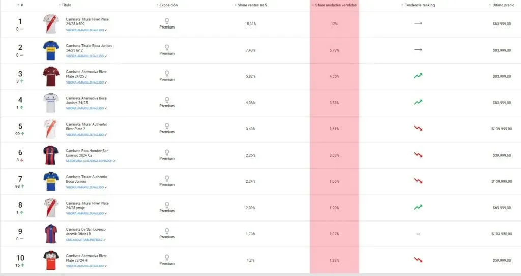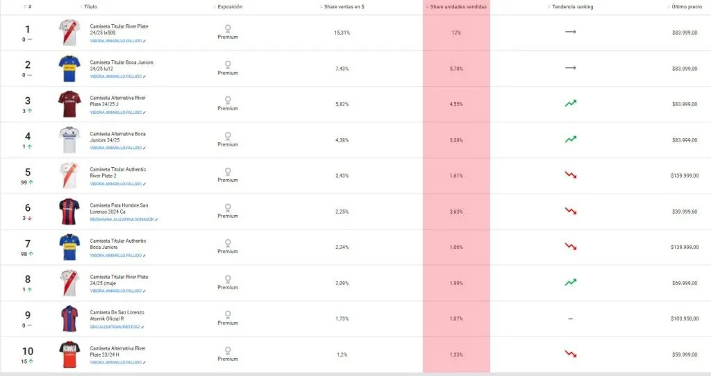 Además, contemplando solamente la Provincia de Buenos Aires, la casaca titular del Más Grande fue el tercer producto más vendido. De hecho, del total de las camisetas vendidas, la primera camiseta de River representó el 12% de las ventas totales, el doble que la segunda del ranking: la titular de Boca (6%).