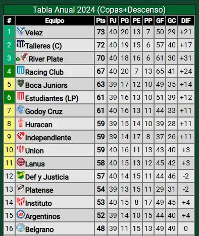 Así quedó la tabla anual rumbo a la Libertadores 2025