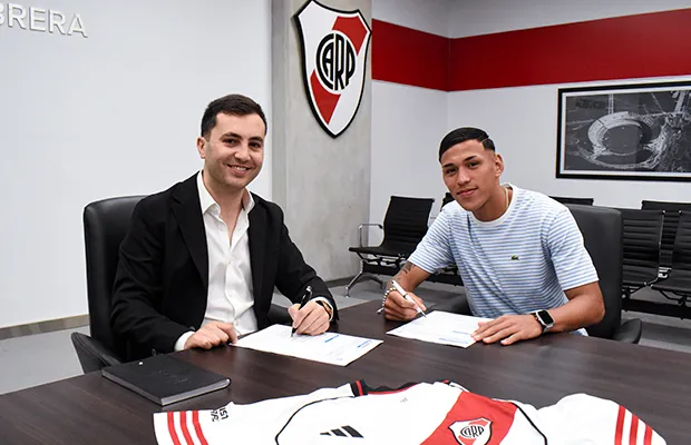 Por un lado, Giménez, quien debutó oficialmente en marzo de 2025 pero lleva un largo tiempo tenido en cuenta en Primera, renovó contrato hasta diciembre de 2028. Su anterior contrato se extendía hasta diciembre de 2026. Además, River lo blindó con una cláusula de rescisión de 100 millones de euros.
