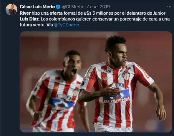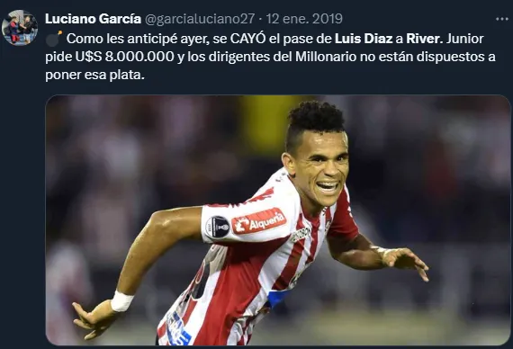 El elegido fue Luis Díaz, que por ese entonces la rompía en Junior de Barranquilla en Colombia y ya tenía varios partidos en el lomo. Hacia allí apuntaron los cañones de la dirigencia, en ese entonces encabezada por Rodolfo D’Onofrio. Hubo una primera oferta rechazada y luego del Millo elevó su propuesta.