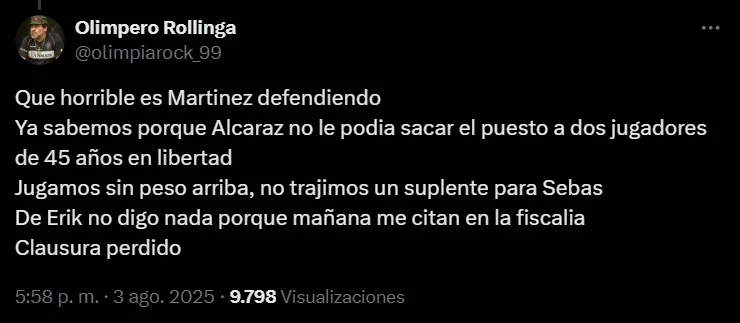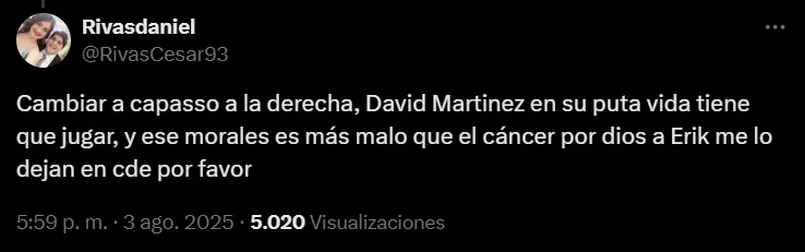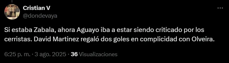 Caer ante el rival de toda la vida siempre deja consecuencias y más cuando el triunfo se escapa de las manos por errores puntuales. Uno de los más criticados en las redes sociales fue Martínez, mencionando la jugada del empate, en la cual no pudo marcar correctamente al hombre del Ciclón que tiró el centro para el cabezazo que terminó en gol.