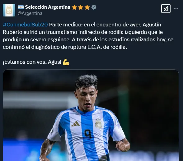 Horrenda noticia recibió River antes de enfrentar a Independiente por la cuarta fecha del Torneo Apertura. La Selección Argentina Sub 20 venció a Ecuador por la segunda fecha del hexagonal final durante el viernes por la tarde pero el foco siempre estuvo en Agustín Ruberto, quien salió lesionado a los 19 minutos de la primera parte.