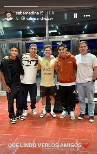 El actual volante de Tigre, que la peleó mucho para llegar a Primera, compartió una foto en su cuenta de Instagram junto a Julián y varios amigos en el hall del hotel. “Qué lindo volver a verlos, amigos“, escribió Medina, reflejando la alegría del reencuentro.