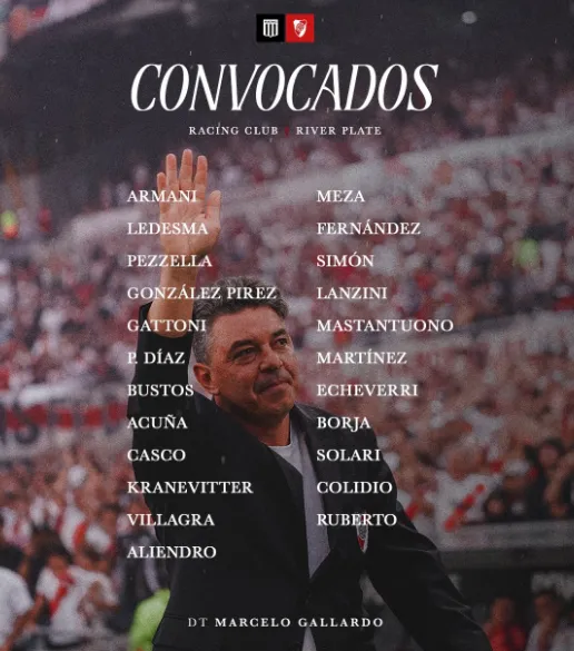 Los convocados de River vs. Racing