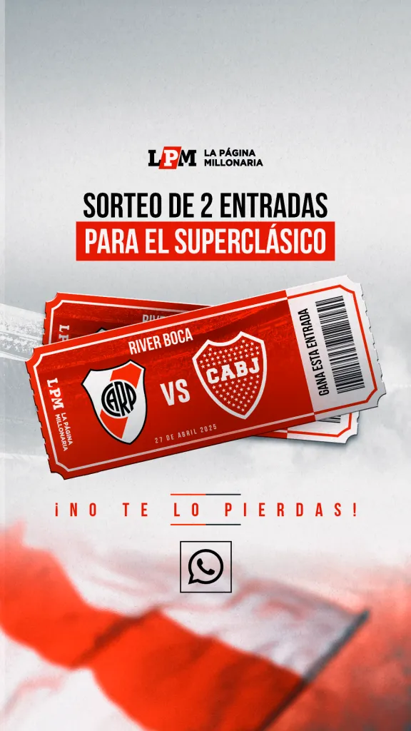 De cara al partido ante el conjunto de la Ribera, La Página Millonaria te da la posibilidad de que asistas al Monumental en caso de que no puedas conseguir tu entrada o no seas socio. A continuación, enterate cómo participar del sorteo exclusivo por DOS ENTRADAS para ir al duelo ante Boca a través de Whatsapp.