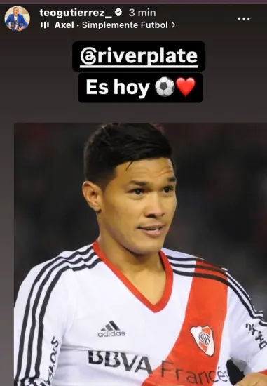 “Es hoy” publicó Teo en su historia de Instagram junto a un emoji de una pelota y un corazón, y de fondo una canción de Axel que se llama Simplemente Fútbol. El colombiano disputó 70 partidos con el Manto Sagrado, donde convirtió 28 goles y se consagró dos veces a nivel local.