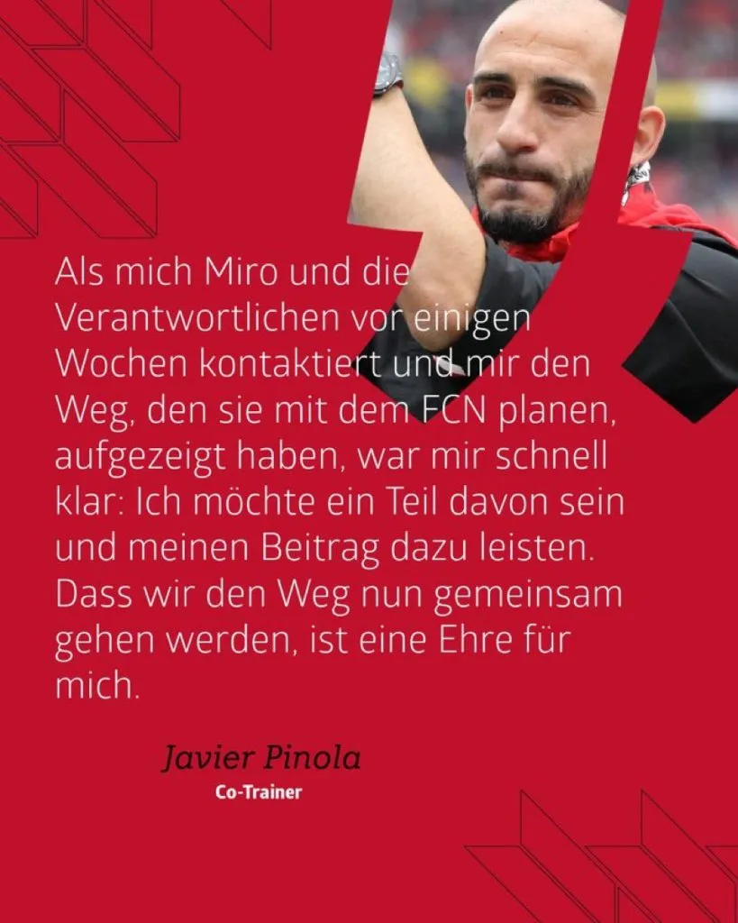 El histórico Miroslav Klose es el técnico del conjunto alemán y Pinola se va a sumar a su estructura de trabajo en los próximos días de cara al arranque de la Bundesliga 2, la segunda categoría del país bávaro. Pinola jugó más de 10 años con la camiseta del Nüremberg y ostenta más de 400 presencias, a tal punto de que una de las tribunas del estadio lleva su nombre.