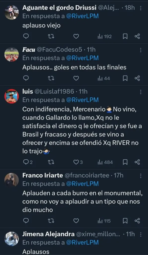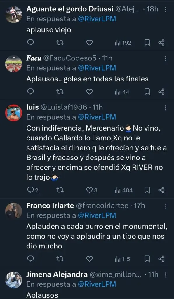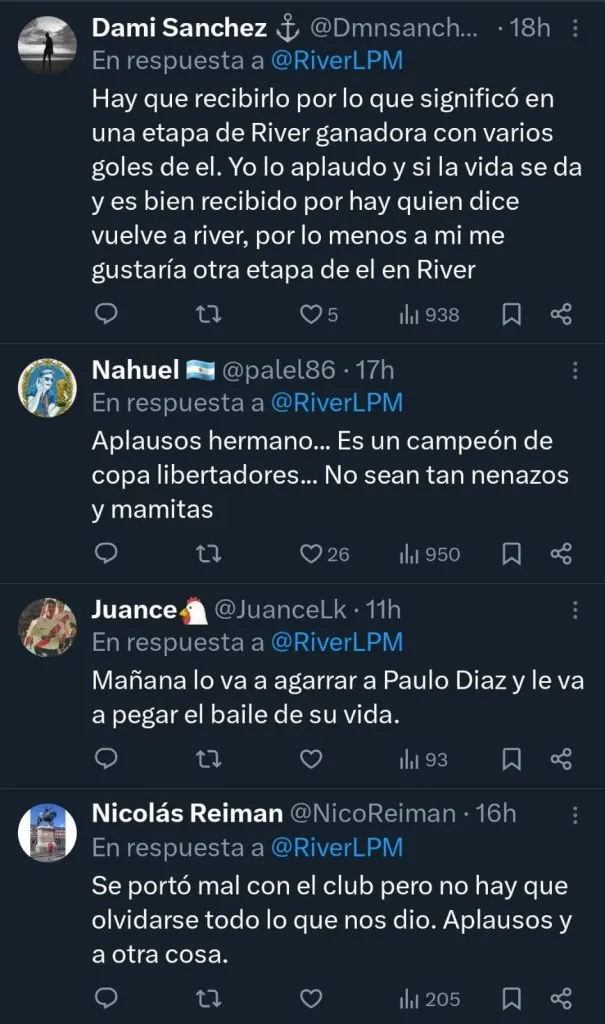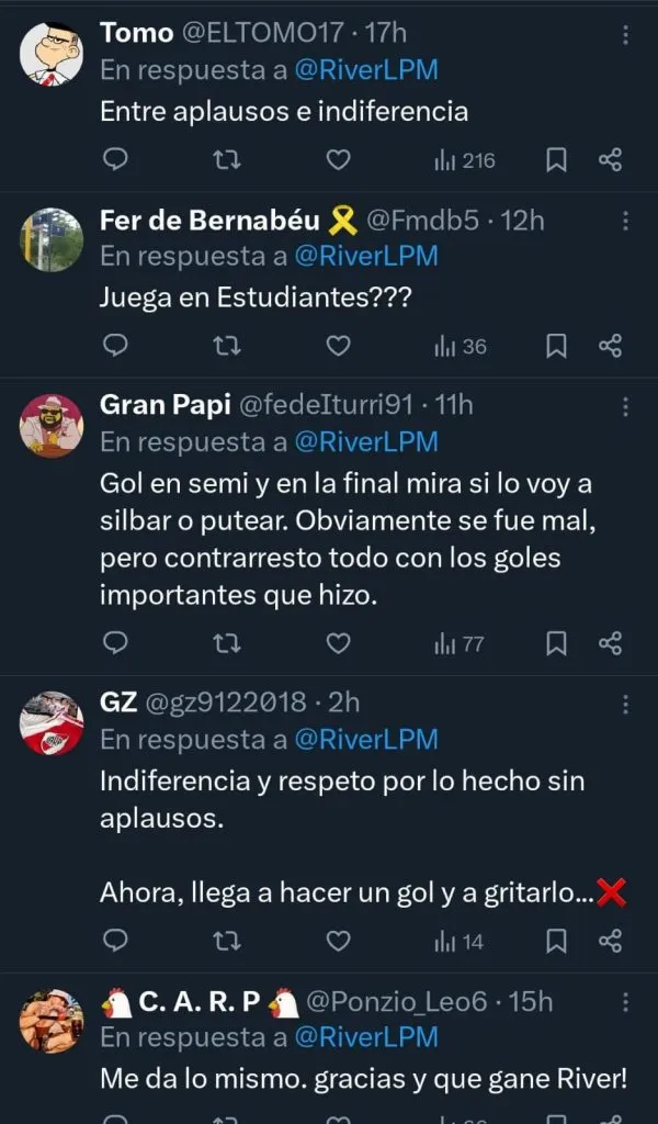 ¿El motivo de la controversia? Es que el ex Colón de Santa Fe tuvo la chance de volver al Millonario, cuando ya no tenía lugar en Bayer Leverkusen. Primero, priorizó seguir en Europa y arribó al Eintracht Frankfurt, pero luego le dijo que no a River para jugar en Inter de Porto Alegre. Eso no cayó bien en la gente y en la dirigencia, al punto tal que quedaron ciertas tensiones entre las partes.