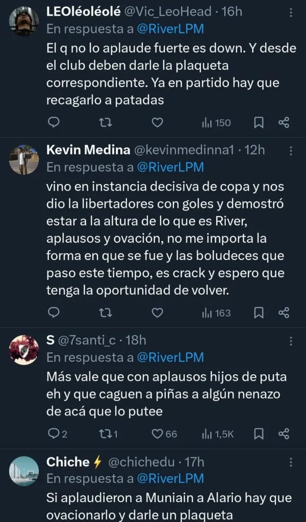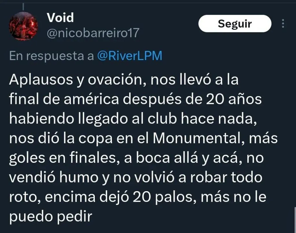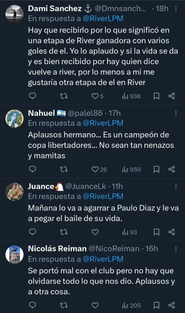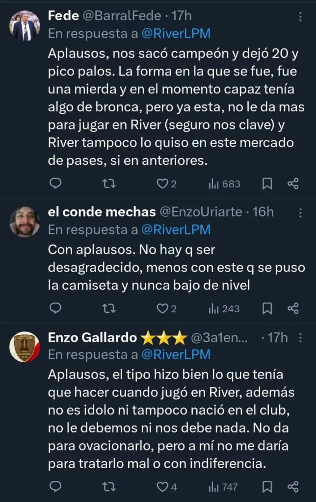 Sin embargo, a casi ocho años de su último partido vistiendo la camiseta del Más Grande antes de ser transferido al Bayer Leverkusen en una millonaria cifra, su regreso al Monumental genera controversia. Hay opiniones divididas entre los hinchas: aplausos por lo que nos dio, indiferencia o algún murmullo por su historia reciente con el club.
