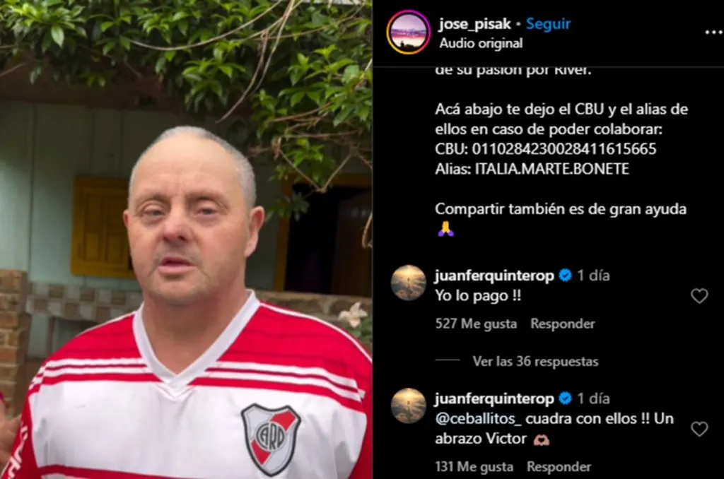 Una necesidad de la que, por suerte, tenemos que hablar en pasado ya que a las pocas horas de publicado el video llegó un comentario que emocionó a todos: “Yo lo pago”, escribió en los comentarios Juan Fernando Quintero antes de etiquetar a quien puso como intermediario para solucionar esto cuanto antes.