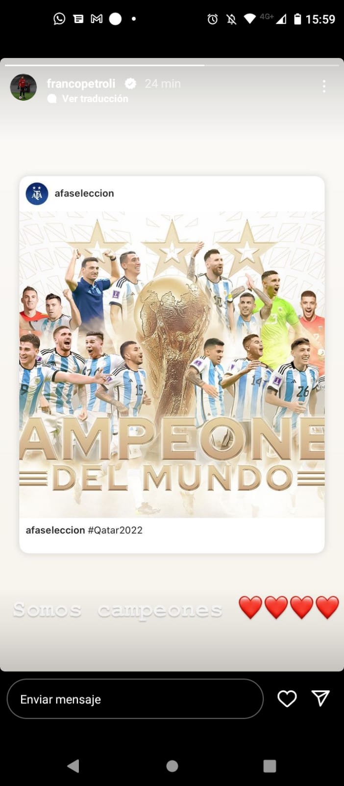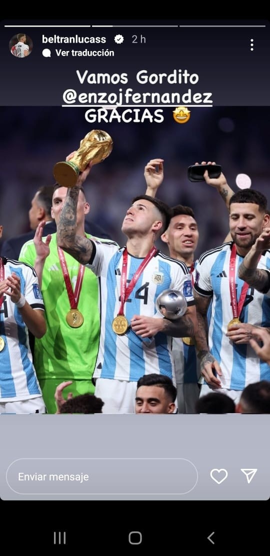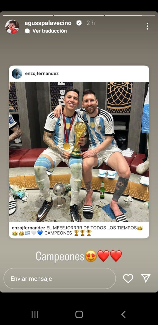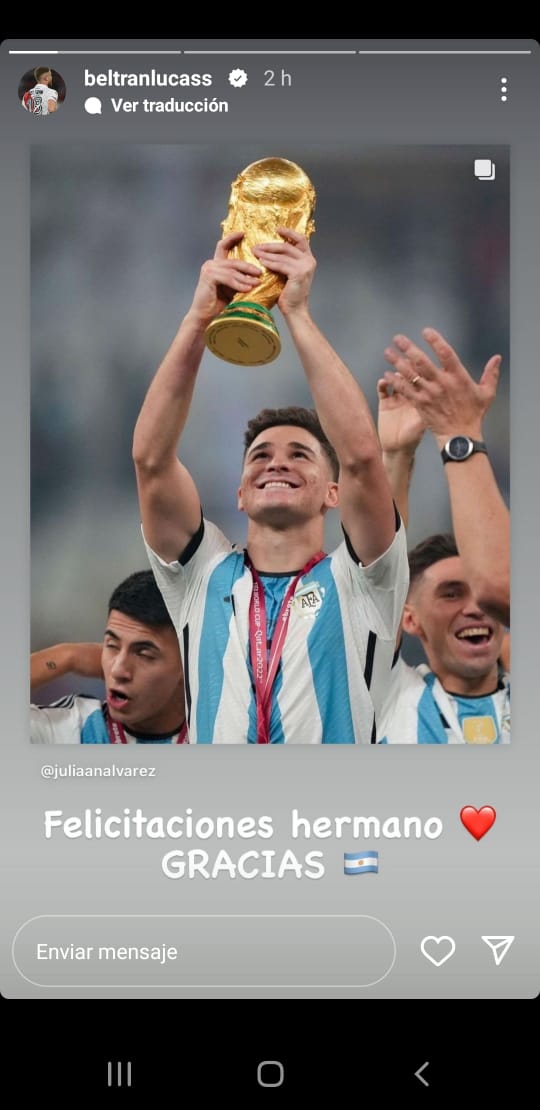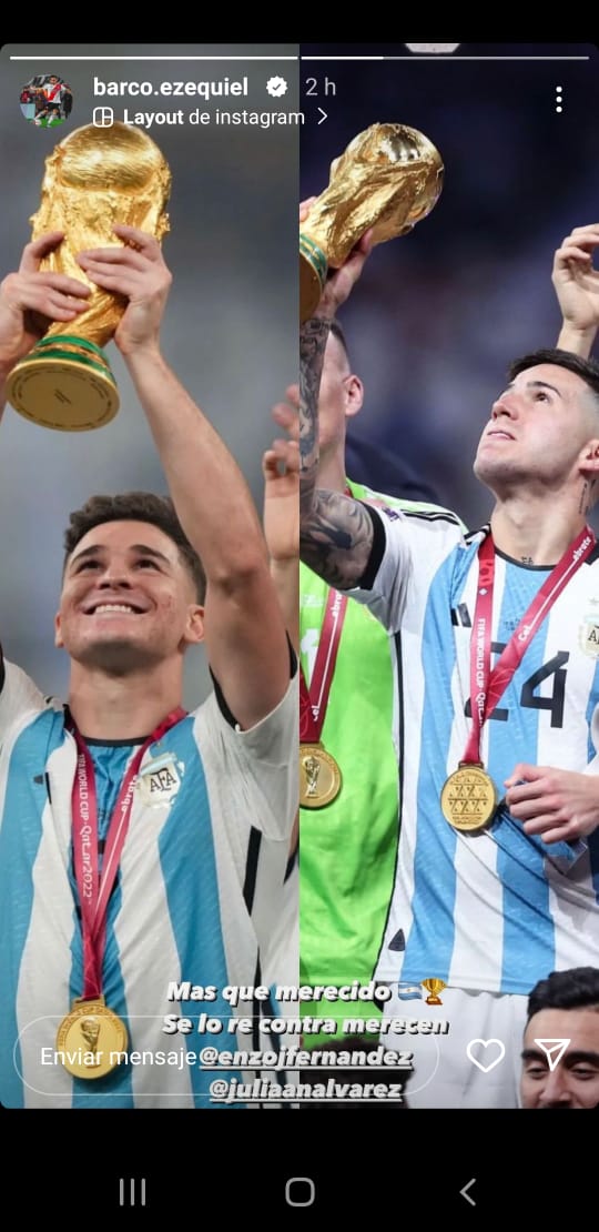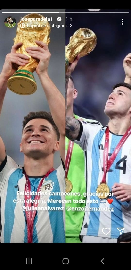 Los festejos también se extendieron a las redes sociales, donde los jugadores compartieron posteos, fotos, videos y dieron rienda suelta a la emoción. La mayor parte de los posteos estuvieron destinados para felicitar a Enzo Fernández y Julián Álvarez, dos jugadores que hace menos de un mes formaban parte del Más Grande y compartieron plantel con la gran mayoría de los futbolistas que integran el plantel profesional. Por supuesto, también estuvieron los saludos para Franco Armani, el único jugador del fútbol argentino y de River que dijo presente en Doha.