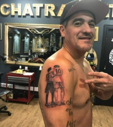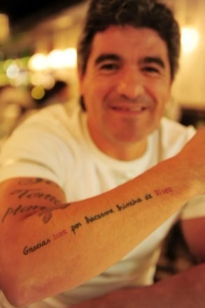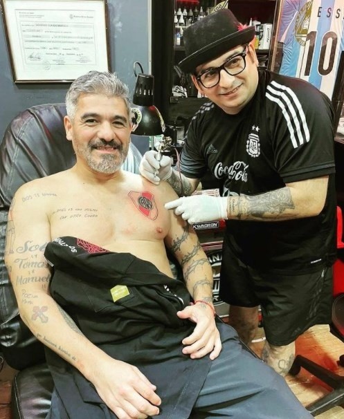 El Burrito ya tenía tres tatuajes vinculados a River en su cuerpo antes de hacerse este último. El primero fue la palabra River en su brazo derecho con una banda roja de fondo. También se había tatuado una imagen sumamente emotiva: él junto a su hijo Tomás abrazados con las camisetas del Más Grande el día de su partido homenaje y finalmente una frase emblemática en su antebrazo: “Gracias Dios por hacerme hincha de River”.