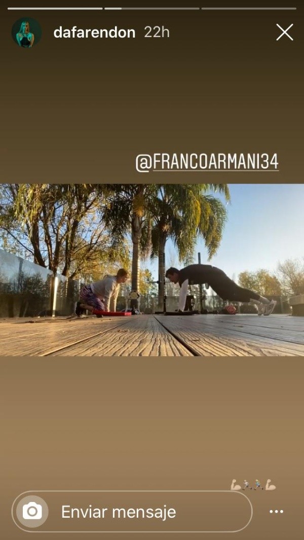 Satisfecho con su nueva casa, Armani publicó una historia de Instagram entrenándose e incluso replicó otra publicación de su pareja, Daniela Rendón. Pese a que podría haber viajado a Medellín para ocupar su domicilio, el arquero prefirió quedarse en la Argentina.
