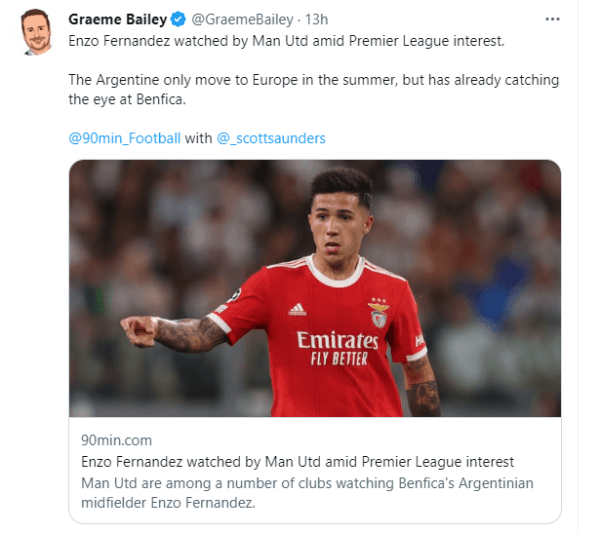 Más allá de la ausencia del crack argentino, la noticia del día tiene que ver con el interés de un nuevo gigante del viejo continente, que sigue de cerca los pasos de Enzo. Tal como sucedió hace unas semanas atrás con el Liverpool de Klopp, ahora apareció otro club de la Premier League que lo sigue de cerca. Según informaron algunos medios ingleses especializados, el Manchester United se sumó a la lista de las instituciones que tienen en la órbita al talentoso mediocampista surgido de la cantera del Más Grande. A pocos días de jugarse su participación en la Copa del Mundo, Fernández sigue deslumbrando a los grandes equipos top.