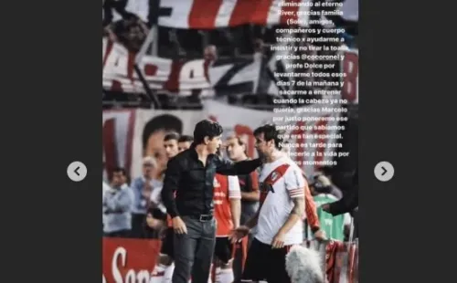 Por otra parte, Leonardo Pisculichi -autor del gol fundamental para la clasificación a la final de la Sudamericana- subió una foto del abrazo que se dio con Gallardo tras el tanto y expresó: “¡Recuerdo inolvidable!”.