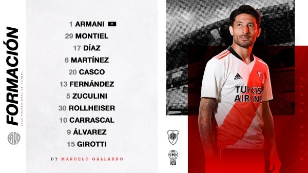 Los once que enfrentarán al Globo. (Foto: @riverplate).