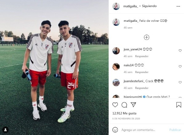 “Miro mucho a dos jugadores que me gustan mucho, uno pasó por River, que es Exequiel Palacios, en él me fijaba mucho, tuve la suerte de que esté cuando yo iba de alcanzapelotas, me gustaba mucho su movimiento de pase, la dinámica que tenía y me gustaba mucho. El otro que me gusta y que está afuera de Kevin De Bruyne, del Manchester City, es muy completo y me gusta mucho”, afirmó Matías Gallardo cuando fue consultado respecto a qué jugadores mira particularmente.