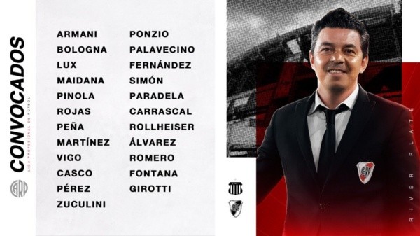 Para este duelo, Marcelo Gallardo decidió convocar a 23 jugadores, quienes viajarán este miércoles en vuelo chárter hacia Córdoba después del entrenamiento en el Monumental. Entre los apellidos se destaca el regreso de Jonatan Maidana a la nómina después de dos meses de inacción, también las presencias de Alex Vigo -había salido con una molestia ante San Lorenzo- y Braian Romero -de alta médica después de desgarrarse en el superclásico-.