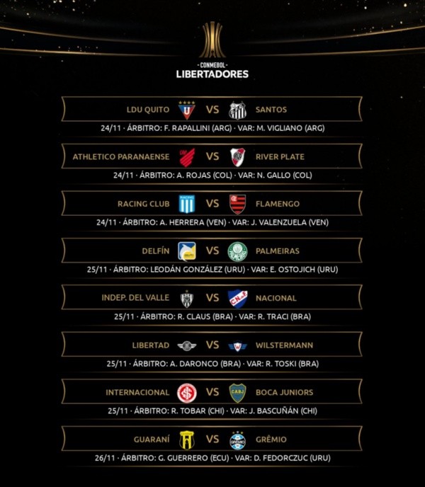 Pero más allá de los resultados obtenidos por River, los recuerdos no son los mejores si de hablar de expulsiones se trata. Es que en el partido ante los chilenos vio la roja Rafael Borré sobre el final del partido, mientras que en Ecuador fue Enrique Bologna quien tuvo que retirarse de la cancha por decisión de Rojas luego de cortar un ataque con la mano fuera del área. Cabe destacar además que el encargado principal del VAR será Nicolás Gallo, también oriundo de Colombia.