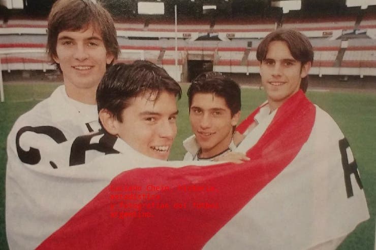 Costanzo en sus inicios en River, junto a Guille Pereyra, Javier Saviola y Damián Álvarez (La Nación)