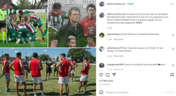 El posteo de Aldirico en Instagram al enterarse que endentaría a River.