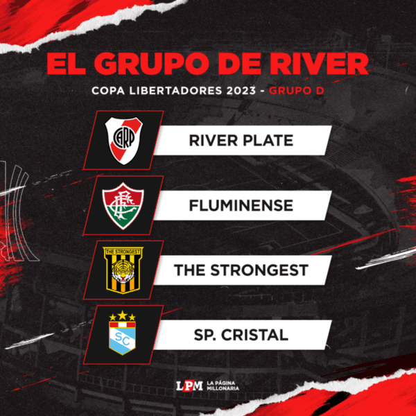 La suerte ya está echada. El sorteodeterminó que River tendrá que enfrentar un equipo poderoso de Brasil, también deberá viajar a la altura de Bolivia y que deberá visitar en Perú a un histórico del fútbol sudamericano. Fluminense, The Strongest y Sporting Cristal serán los rivales del Millonario en la fase de grupos de la Copa Libertadores 2023. Una zona que a priori tiene cierta complejidad para el Más Grande.