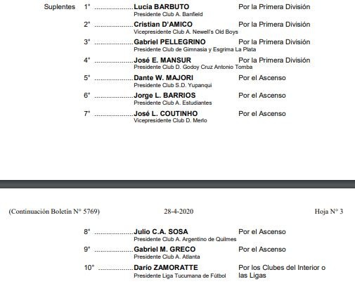 La primera parte de la lista de la AFA