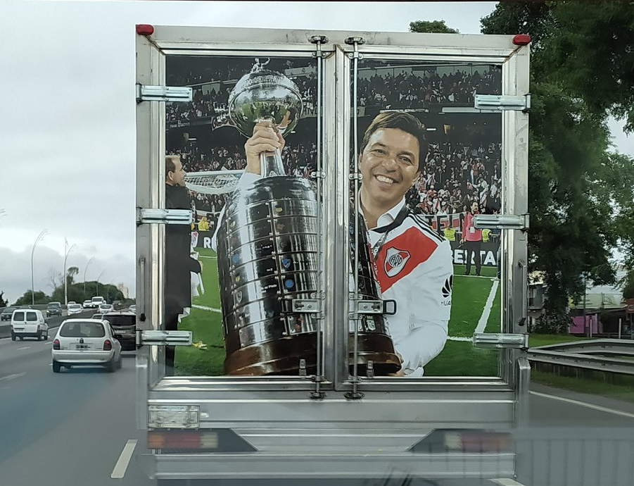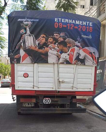 No solo en Estados Unidos los hinchas de River fueron ingeniosos, sino que en Argentina también se las rebuscaron para personalizar sus autos y recordar por siempre la final de Madrid. Desde ploteos en el trailer de un camión hasta calcomanías con el relato del gol del Pity Martínez por parte de Mariano Closs, los fanáticos del Más Grande llevaron el triunfo en 2018 a otro nivel.