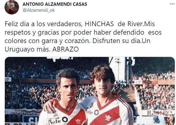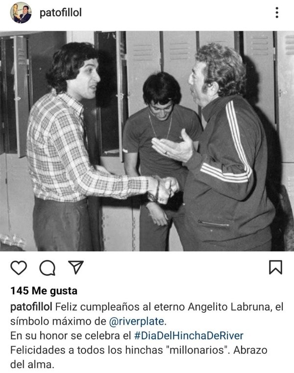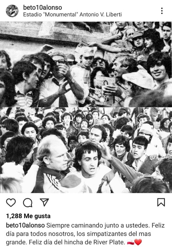 Entre los mensajes y saludos que inundaron las redes se destacaron dos referentes históricos como Norberto Alonsoy Ubaldo Matildo Fillol. “Siempre caminando junto a ustedes. Feliz día para todos nosotros, los simpatizantes del mas grande. Feliz día del hincha de River Plate”, puso el Beto en su cuenta de Instagram.