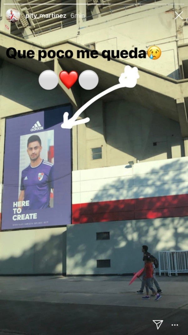 “Que poco me queda” y un emoji triste. Así el PityMartínez expresó en su cuenta de Instagram que aún no terminó de irse pero ya extraña a River. El mediocampista subió una foto del Monumental donde puede verse una gráfica con él como protagonista. Claro, dicha imagen no estará mucho tiempo más en el Antonio Vespucio Liberti.
