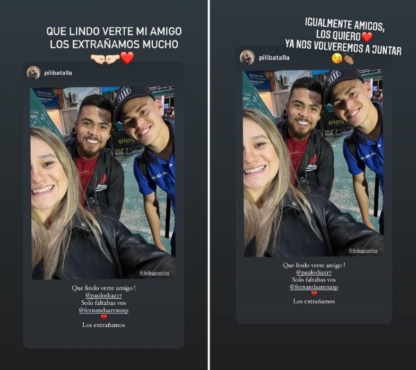 El que tomó la posta fue Fede Girotti, que compartió la historia en su cuenta de Instagram con un mensaje destinado a Paulo: “Qué lindo verte mi amigo, los extrañamos mucho”. Acto seguido, el defensor chileno respondió: “Igualmente amigos. Los quiero, ya nos volveremos a juntar”. Una nueva muestrade la hermandad que nació en la intimidad del plantel de River, que promete continuar para toda la vida.