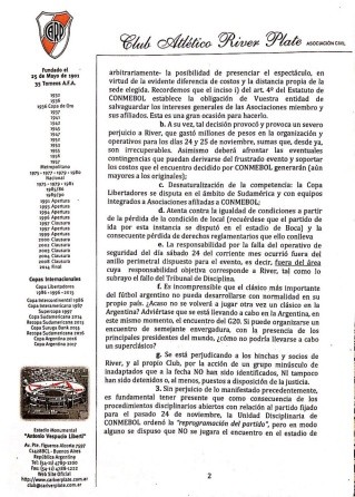 Además se manifiesta que hubo “desnaturalización de la competencia” y “desigualdad de condiciones”, ya que el partido de ida se disputó en el estadio de Boca. Y finalmente el club expresó que iniciará acciones legales para defender sus intereses.