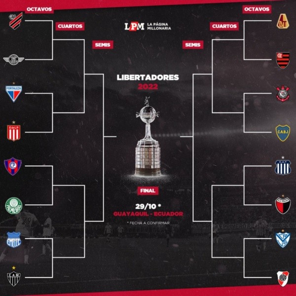 La ilusión de River por ganar esta Copa Libertadores permanece intacta y el equipo va por buen camino. El Millonario superó de forma holgada la fase de grupos, en la que se clasificó a falta de una fecha para el final, y ahora deberá sortear un rival difícil como lo es Vélez Sársfield. El partido de ida se jugará en el José Amalfitani de Liniers el miércoles 29 de junio y la vuelta tendrá lugar en el Estadio Monumental exactamenteuna semana después, el miércoles 6 de julio.