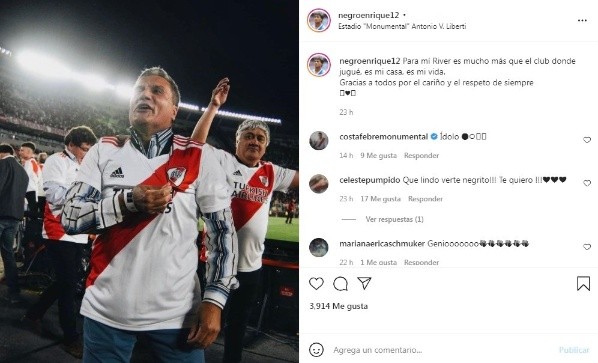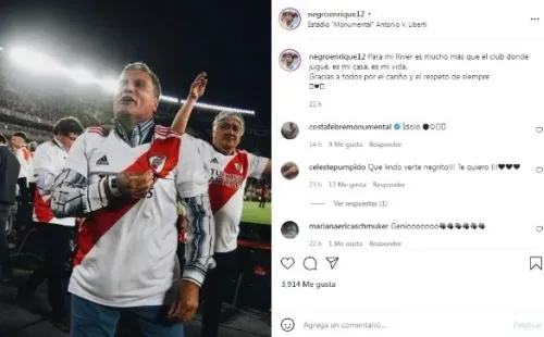Héctor Enrique vivó un año 1986 soñado: se coronó campeón de todo con River y además fue campeón del mundo con la Selección Argentina en México. El Negro, siempre con una sonrisa en su rostro, fue uno de los más emocionados en el homenaje realizado en el Monumental, se lo observó feliz junto a sus ex compañeros y de la misma manera recibiendo el cariño de los hinchas. El Negro publicó en su cuenta de Instagram un emotivo mensaje: “Para mí River es mucho más que el club donde jugué, es mi casa, es mi vida. Gracias a todos por el cariño y el respeto de siempre”.