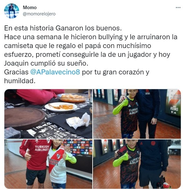 Ser jugador de River no es solamente entrenarse, convertir un gol o dejar la vida en un cierre sino más bien es entender que millones de personas te admiran, te quieren, te tienen como ídolo. El gesto que tuvieron Palavecino, Enzo Fernández y Joni Maidana con Joaquín es mucho más importante que cualquier gol o gran rendimiento porque ser jugador de River también es representar estos valores y hacer feliz a un nene que no la estaba pasando bien. No por nada somos los más grandes.
