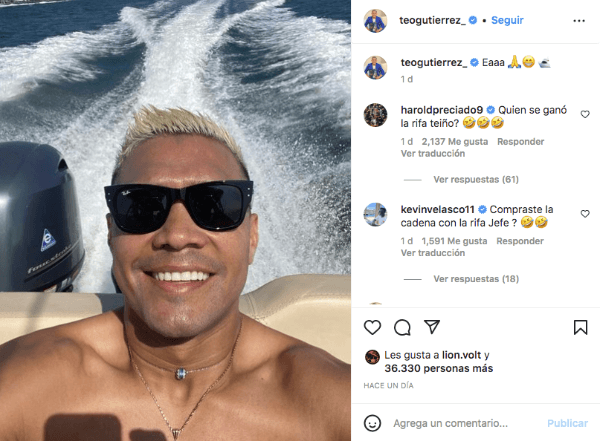 Rápidamente, los comentarios de una de sus publicaciones paseando en lancha se llenó de hinchas enojados y otros haciendo bromas. “Compraste el barco con la rifa”, escribió uno. Teo, lejos de hacerse problema, lo tomó como un chiste: “Papito, con esa plata estoy viajando“. Antes de que el enojo aumentara, Teíto publicó en un nuevo comentario que repetirá el sorteo y que alguien sí o sí se llevara la casaca del 10 campeón del mundo.