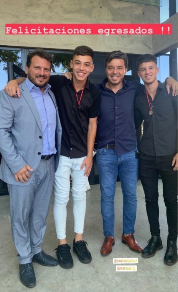 Matías Gallardo se desempeña en la Cuarta División del Millonario y ayer cerró una etapa muy importante en su vida, no futbolística sino académica. Finalizó la secundaria en el colegio de River y la entrega de diplomas también se hizo en el SUM del Estadio Monumental. Como no podía ser de otra forma, el Muñeco se hizo presente junto a su familia para disfrutar del logro de uno de sus pequeños.