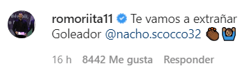 Pero la cuenta oficial del Millonario no fue el único que le dio un último mensaje riverplatense al delantero, sus compañeros de plantel también se tomando un momento para dedicarle un post en las redes sociales. Lucas Pratto, Ignacio Fernández y las emotivas palabras de Rodrigo Mora, entre otros.