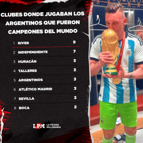 La obtención del Mundial de Qatar desató una locura impresionante en toda la sociedad de nuestro país, y también tuvo un condimento muy especial para los hinchas de River. Es que ni más ni menos que seis futbolistas de las Inferiores levantaron la copa del mundo, y varios de ellos tuvieron un rol protagónico fundamental en la consagración. Pero además de todo aquello el caso de Franco Armani también es para destacar, porque si bien no sumó minutos en la competencia ha formado parte de todo el proceso atajando en partidos importantes, y además contribuyó aún más a estirar la diferencia de River en un récord muy particular.