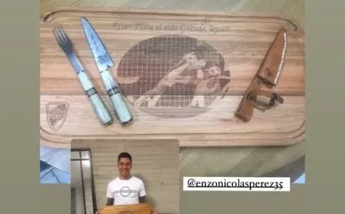 Tatiana, hermana menor del volante del Más Grande le obsequió una tabla de mandera con su figura grabada, la imagen corresponde al 19 de mayo, día en que se puso los guantes y se paró bajo los tres palos. Pero también recibió, a través de Instagram, el saludo de Gastón Fernández, ex futbolísta del Más Grande que compartió plantel con el volante en Estudiantes. En la foto, la Gata tiene puesto el buzo verde de Enzo.