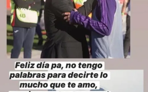 “Feliz día pa. No tengo palabras para decirte lo mucho que te amo, gracias por tanto, sos el mejor”, escribió Matías en una historia de Instagram, mientras que de fondo aparecen dos imágenes suyas con el Muñeco. Una en pleno Monumental de cuando fue alcanzapelotas y la otra compartiendo juntos vacaciones en el Sur.