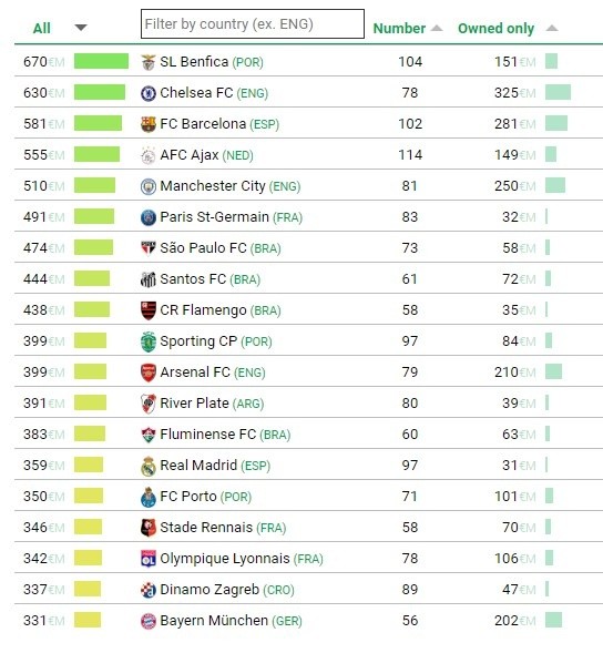 River, con ventas que alcanzaron los 391 millones de euros, se encuentra en la 12º posición del ranking. ¿El dato saliente? Escaló 15 lugares con respecto al mismo ranking que elaboró la CIES hace un año atrás, cuando ubicó al Millonario en el puesto número 27. El Top 5 está liderado por Benfica (€670 M), Chelsea (€630 M), Barcelona (€581 M), Ajax (€555 M) y Manchester City (€510 M).