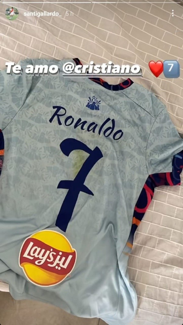 Las muestras de afecto se repitieron tras el partido. las imágenes televisivas permitieron ver a Marcelo Gallardo hablando y riendo con Messi, Neymar, Cristiano y el Pity, las grandes figuras del evento que organizó el estado árabe. Lo que no se vio en la TV y sí a través de las redes sociales es que Santino Gallardo, delantero de la Sexta División de River, se quedó con uno de los grandes tesoros que se trajo el Muñeco desde Arabia Saudita. El hijo del DT publicó en su cuenta Instagram una foto de la camiseta que usó CR7 en el partido con el dorsal número 7 y un mensaje de agradecimiento: “Te amo @Cristiano”, expresó el Muñequito. Una verdadera reliquia.