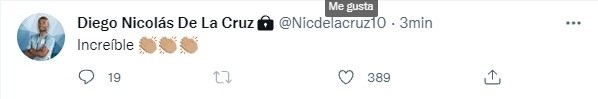 Podríamos buscar muchas palabras para definir este resultado de River, pero en sus redes sociales, el uruguayo lo hizo con una sola que encaja a la perfección: “Increible”, escribió De la Cruz en su cuenta de Twitter, seguido de un emoji de un aplauso. Nico fue un hincha más y quedó maravillado con la actuación de todo el plantel.